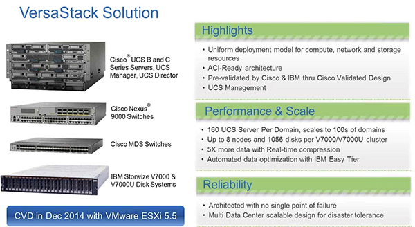 A Cisco e a IBM criaram a plataforma VersaStack com o objetivo de oferecer infraestruturas de tecnologias de informação (TI) de implementação ágil e flexível. Esta solução foi desenvolvida de modo a proporcionar elevados níveis de desempenho para serviços cloud e big data, entre outros. Adicionalmente, aposta na facilidade de integração e na versatilidade, assim como no aumento da eficiência, através de uma gestão unificada.
